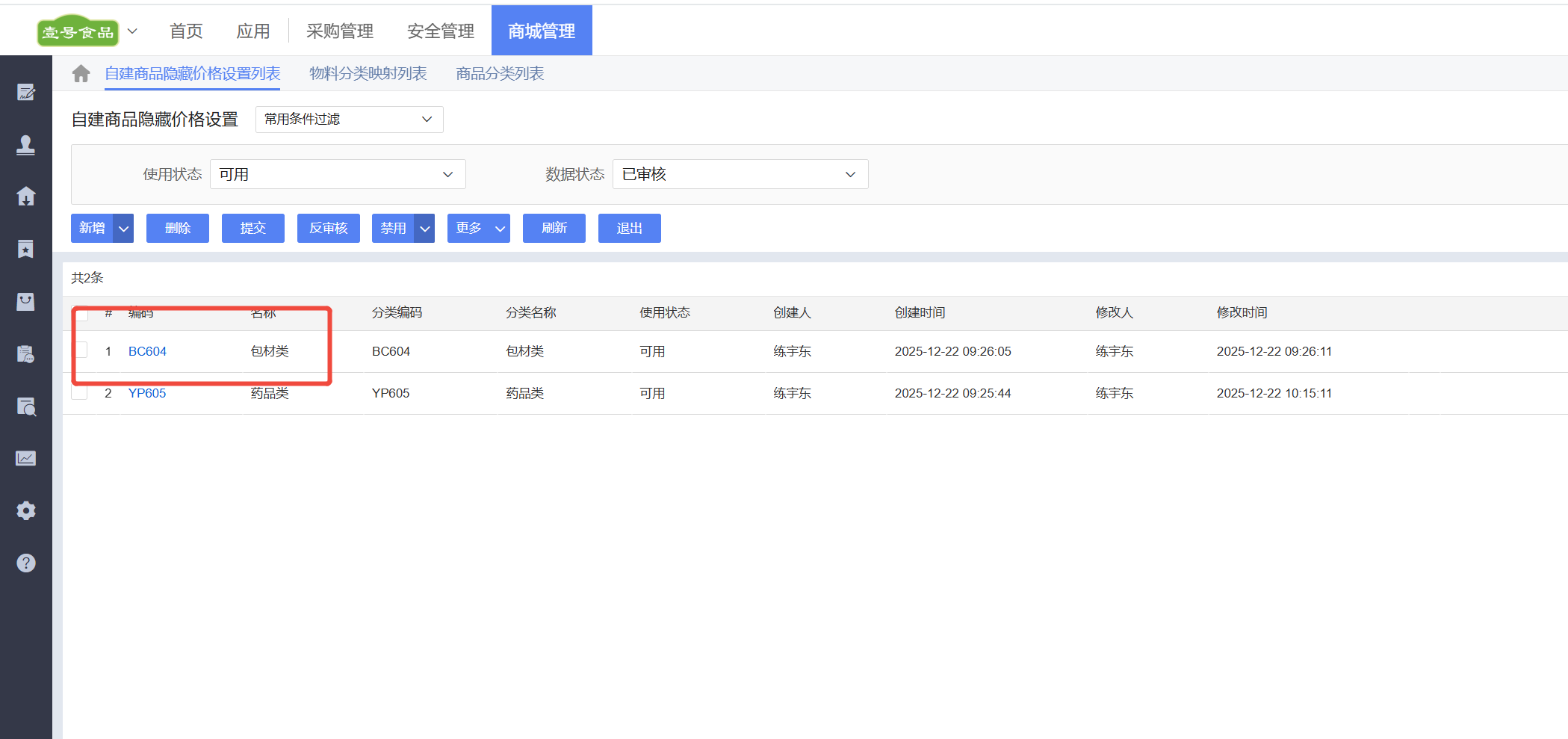 采购SRM-如何按商品分类设置上架商品价格隐藏