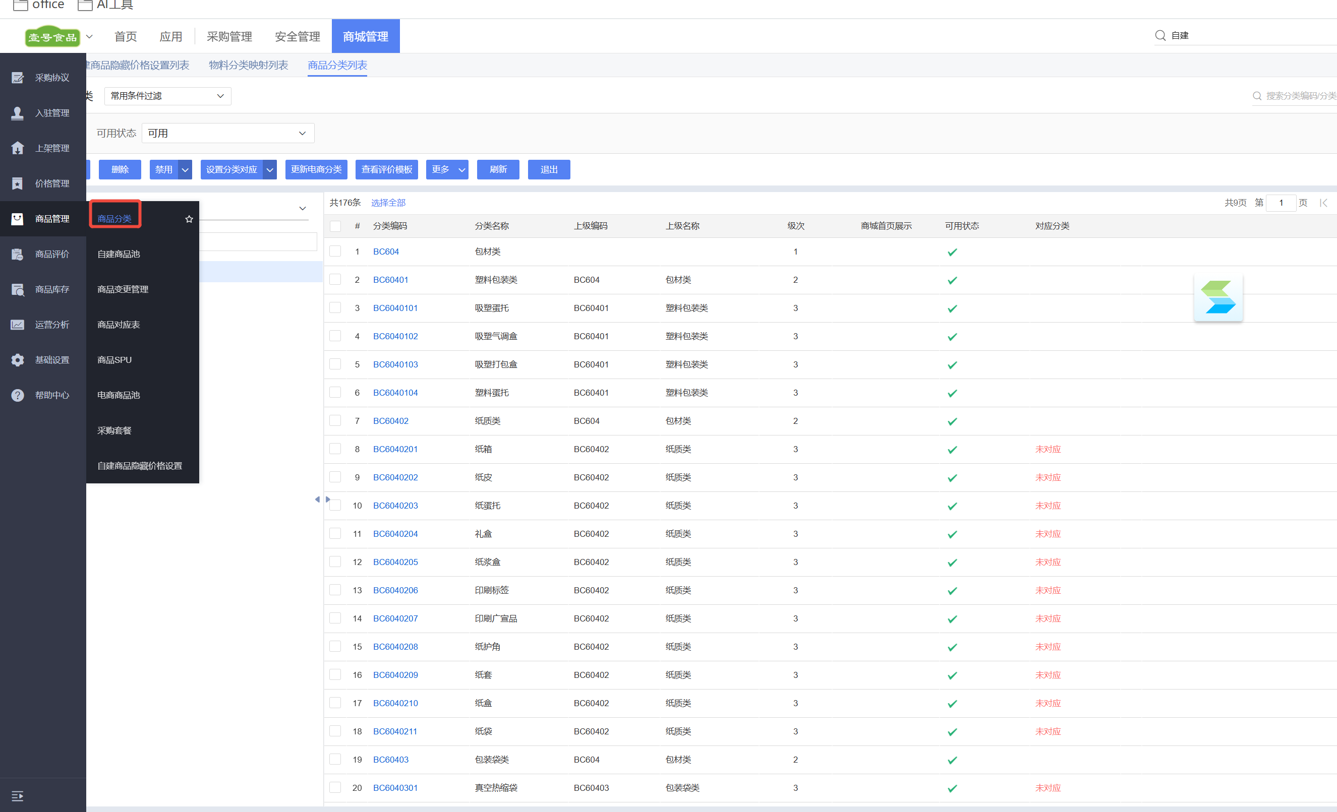 第一步:进入商品管理-商品分类,维护后商品分类,如图所示