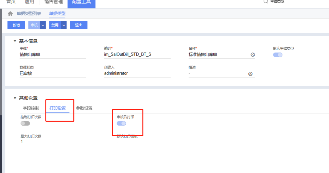 问题描述:单据已经增加打印模板,但在打印时提示“单据类型xxxxx单“中设置了“审核后打印”,而xxxxxx单未审核
