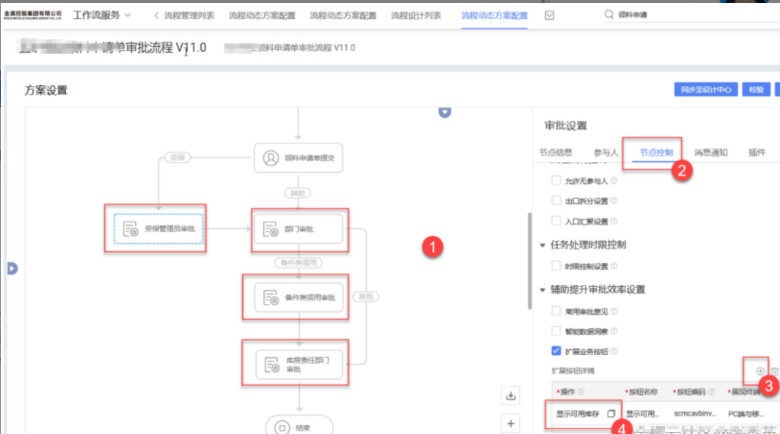 在待办任务里面查看可用库存,需要在流程对应节点上添加按钮权限。处理方式:找到对应流程---选择节点--节点控制---添加"显示库存按钮"