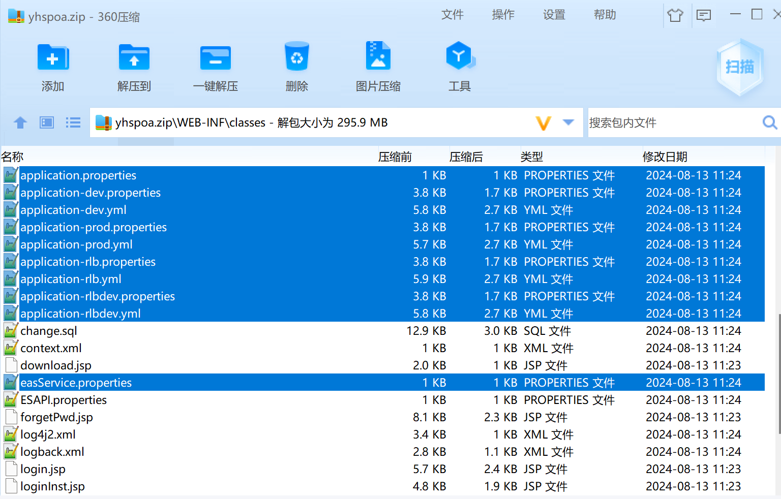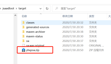 c、以上步骤最终得要一个war包,将该包修改为yhspoa.zip(命名可以不带,后缀war需要修改为zip)