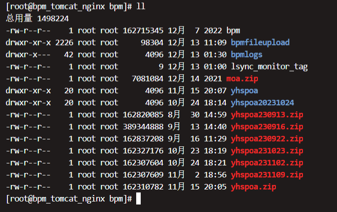 [root@bpm_tomcat_nginx bpm]# cp /tmp/yhspoa.zip /bpm/