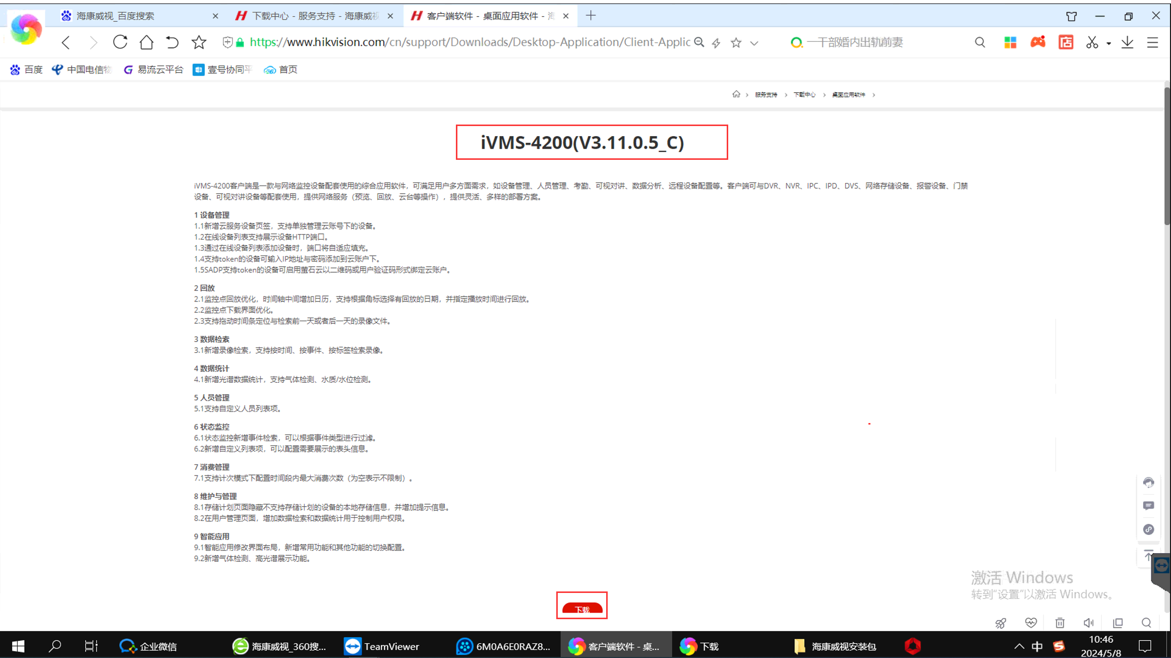 1、打开海康威视视频监控客户端下载地址,下载安装包: