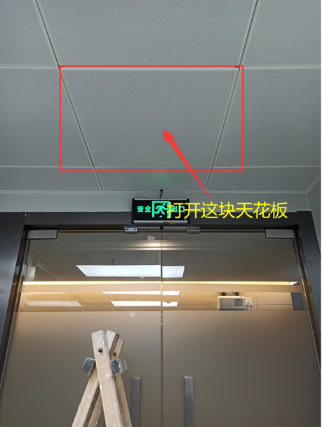 1)首先找到门禁电源的位置,在机房门口上方中间的第二块天花板上打开。