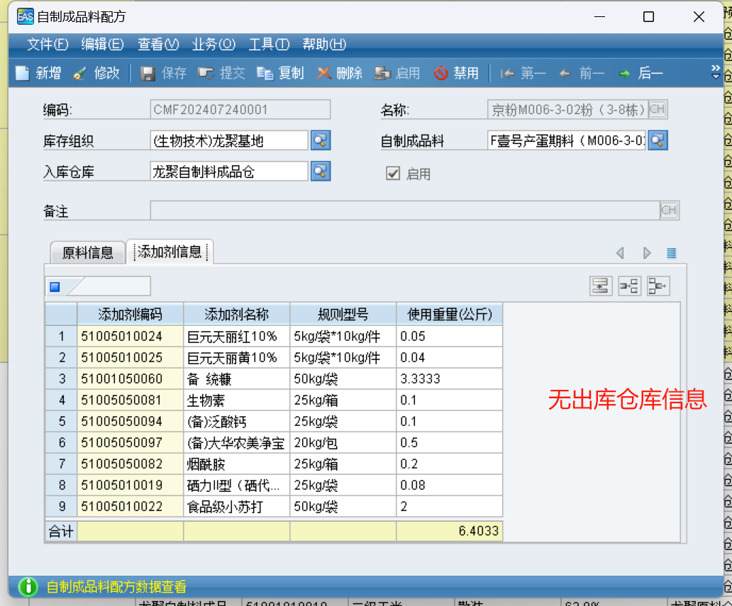 2、业务影响:添加剂信息是没有出库仓库信息,因此在适配了多仓库出库逻辑之后,添加剂的出库信息则无法确定。