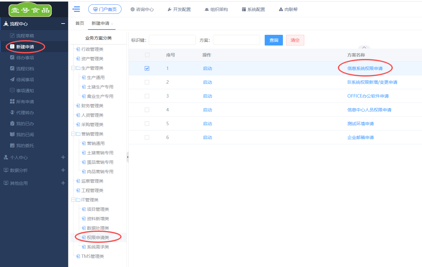 2、菜单:新建申请-权限申请类-信息系统权限申请
