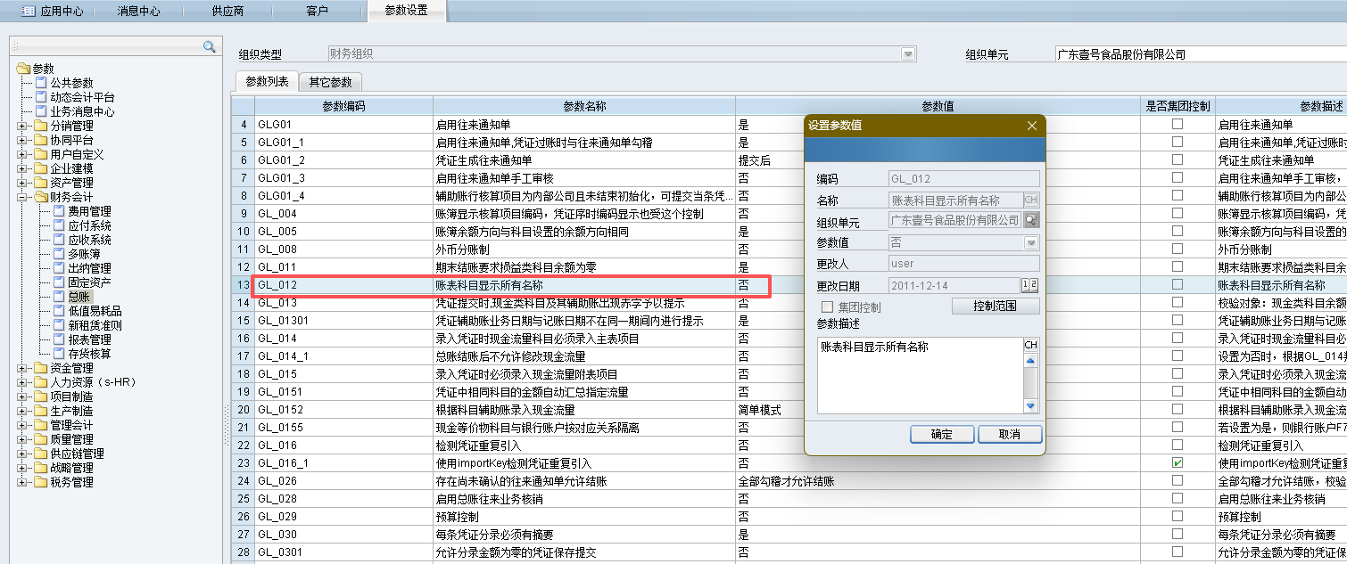 系统平台-系统工具-系统配置-参数设置中,修改参数GL_012的值为【是】
