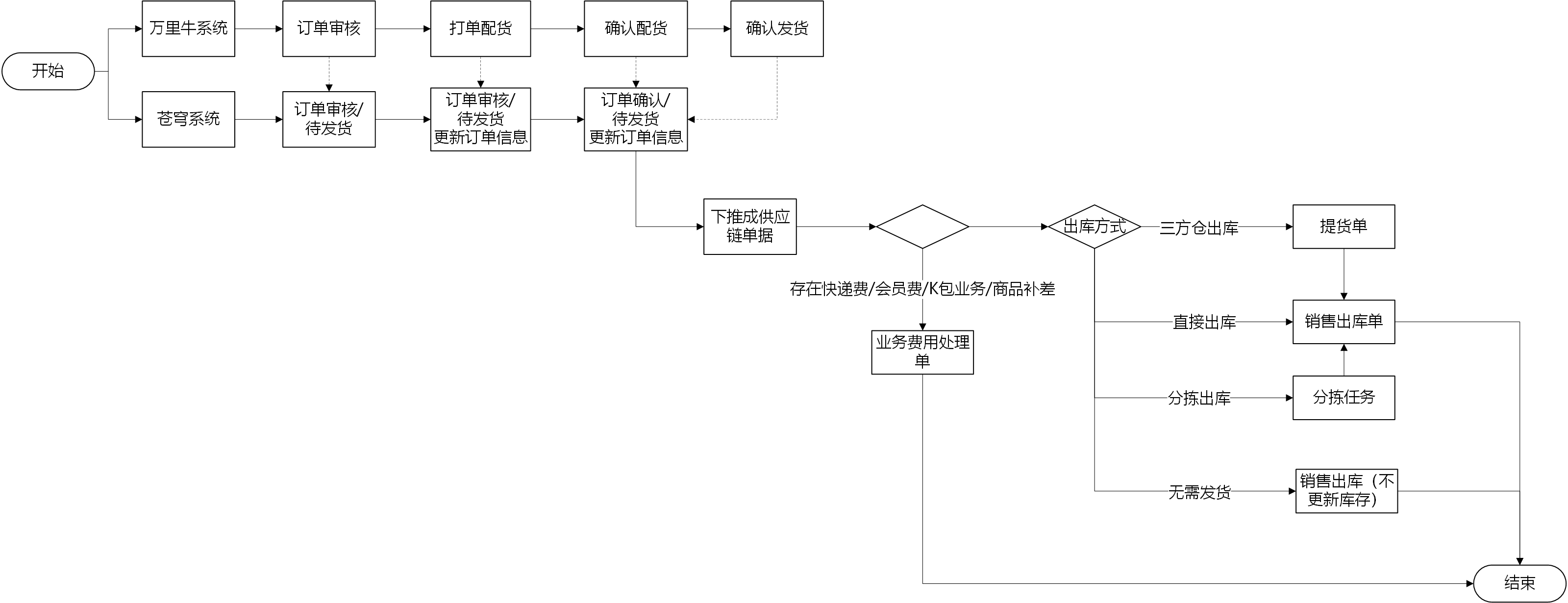 出库方式-无需发货:业务费用单,一般为商品补差和订单存在运费或者是会员费、漏发的情况下才为此类型